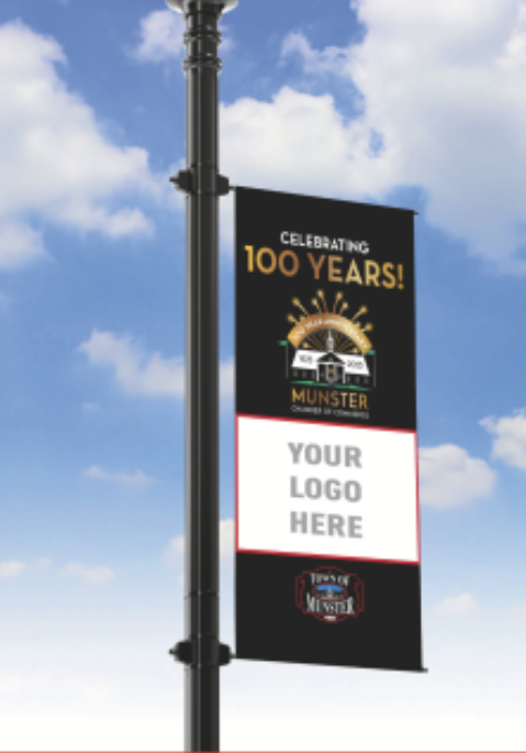 The celebration of The Munster Chamber of Commerce’s centennial milestone continues with a business banner program. Businesses and organizations will have the opportunity to demonstrate their support of the chamber’s 100th year anniversary celebration by sponsoring light pole banners which will be placed along the Ridge Road and Calumet Avenue corridors allowing for high visability.